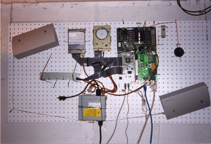 How it's Hanging Those are Packard Bell speakers from my old computer. They used to be on the side of a monitor, now they just look all curved and cool.