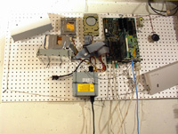 I ended up mounting it on top of the CD-ROM with Velcro and the window facing outward (of course). Here I am now, typing this and watching the arm fly around while I copy files back and forth and back and forth and back.....and......forth........and........... |