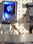 My trip to Radioshack landed me with a blue LED, three 12V LEDs (2 green, 1 red), a blinking red and a blinking green LED. I spent all kinds of time then placing the lights in various positions to see how they looked. The first light I decided on was one in the HDD. Since I had cut holes in so many HDDs I decided a light would be a welcome addition to this drive. Blue lights in HDDs look very cool in the dark. All those reflective surfaces make for lots of blue.