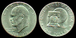Designed by Frank Gasparro (Obverse) and Dennis Williams (Reverse). This is the Bicentenial version of the Eisenhower Dollar.