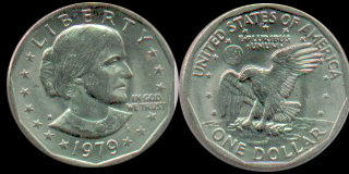 Intended to honor Susan Anthony, a pioneer in women's rights, this coin was often confused for the quarter and did not go over well with the public. It was only minted between 1979 and 1981. I have a few more of these, but it would just take up space to show them all.