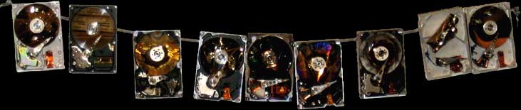 The wall of hard drives is really just nine drives strung up on a wire at the moment, but it is growing...