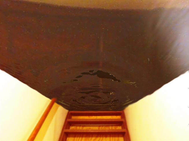 The surface of the flouroinert is a bit dusty, you can see stuff that has settled on the surface all over the place. There is some rippling where the fluid is pouring in.